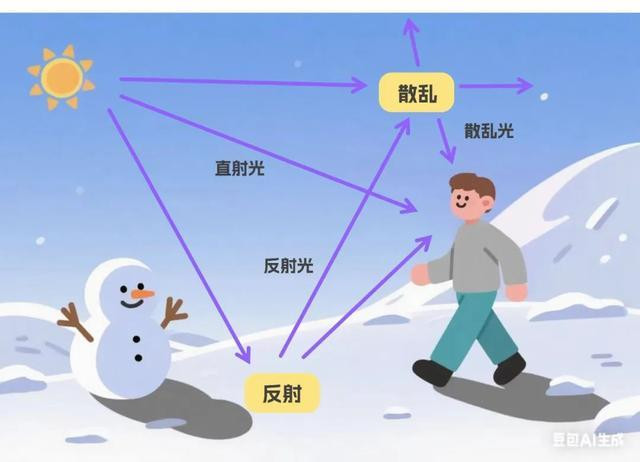 地面反射紫外线会经地面反射到伞下搞“偷袭”。浅色地面(水泥、大理石)、沙滩、雪地反射率极高(沙滩反射约15-25%,雪地甚至高达80%!),这些反射光会从下方和侧面攻击你的下巴、颈部、手臂和腿部。